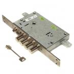 Замок оборудован шестирёнчатым механизмам, который позволяет прилагать минимум усилий при вращении ключа. Изготовлен из цинка и алюминия. Имеет 4 стальных никелированных ригелей диаметром 18 мм с ходом 34 мм, плюс реверсивная защёлка. Защёлка может убираться и ключом и ручкой. Ключевое отверстие удалено на 67.5 мм. Три точки запирания. класс безопасности - 4. Полное запирание 2 оборота. Лицевая панель из никелированной сатинированной стали. Этот замок может входить в мастер-систему где один замок может открывать несколько дверей, ворота, гараж.В комплекте 5 ключей. Цилиндр в поставку не входит. К замку можно приобрести бронепластину. *